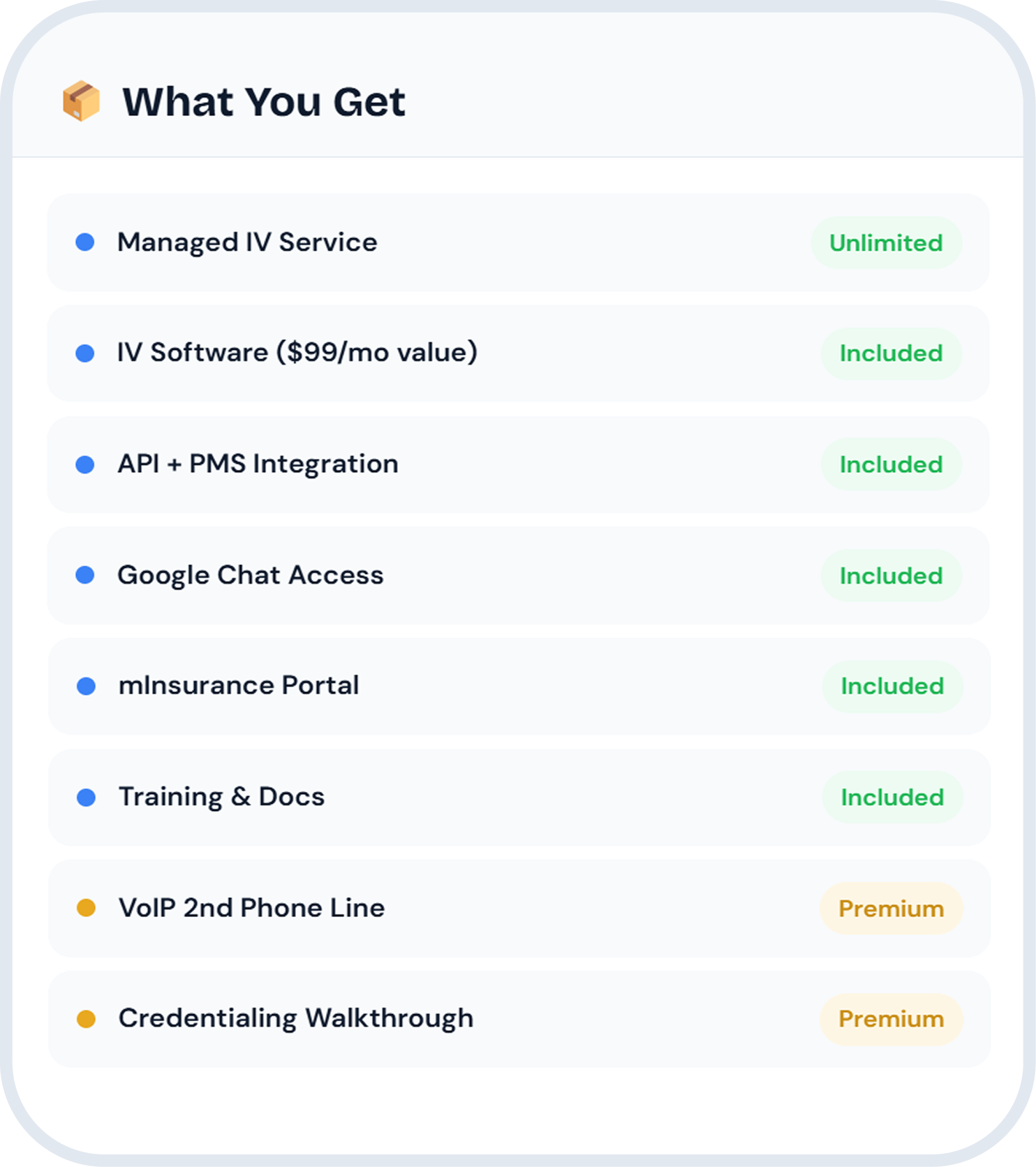 Insurance Concierge includes everything your practice needs to go live — no hidden costs, no surprises.