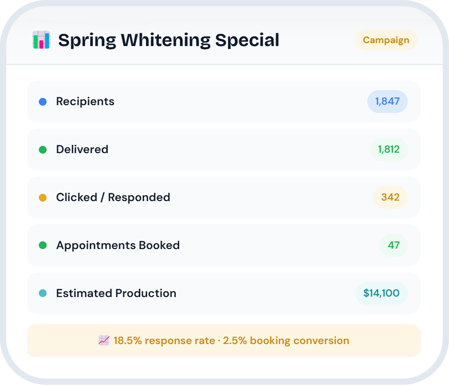 Campaign analytics — track sent, delivered, responded, and booked